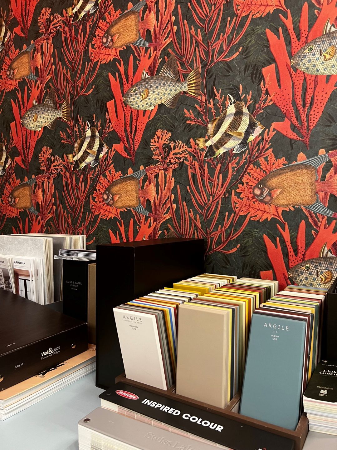 Дизайнерлік тұсқағаздар, тоқыма бұйымдары, әлемдік жетекші брендтердің бояулары.